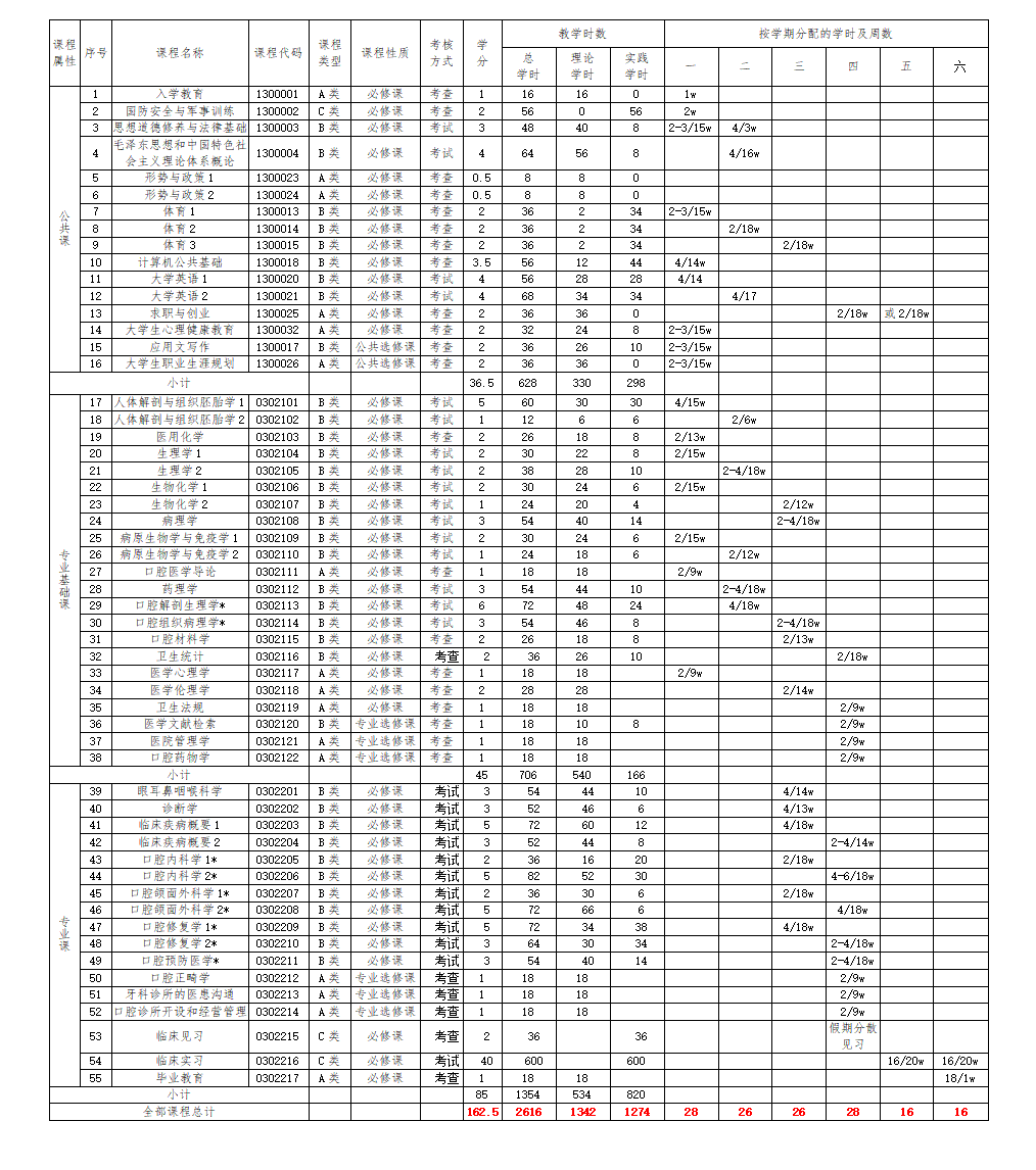 2016版口腔医学专业人才培养方案