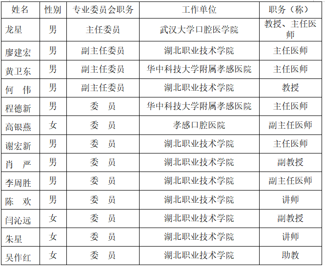 口腔医学专业专业建设指导委员会