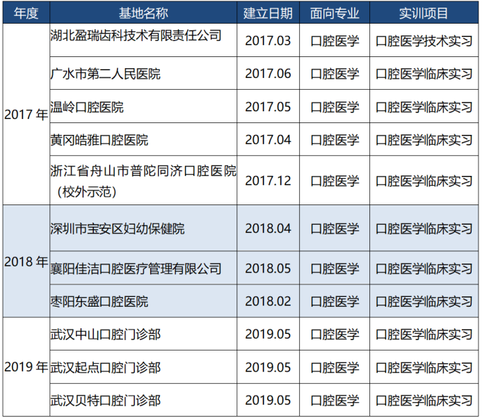 口腔医学院2017-2019年新增校外实训基地