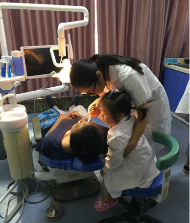 实习生在带教老师的指导下处理儿童牙病患儿
