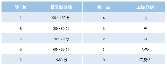 为便于评定学生的学习质量,应采取计算学分绩点的办法。绩点由高到底一般规定为4、3、2、1、0。考核成绩与课程绩点的对应关系如下: