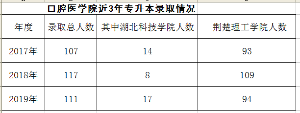 表2 我校口腔医学专业近3年专升本录取情况