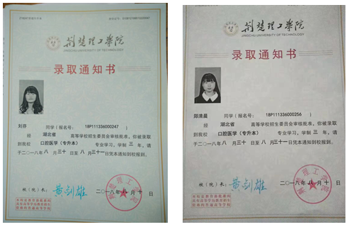 图7 部分学生专升本录取通知书