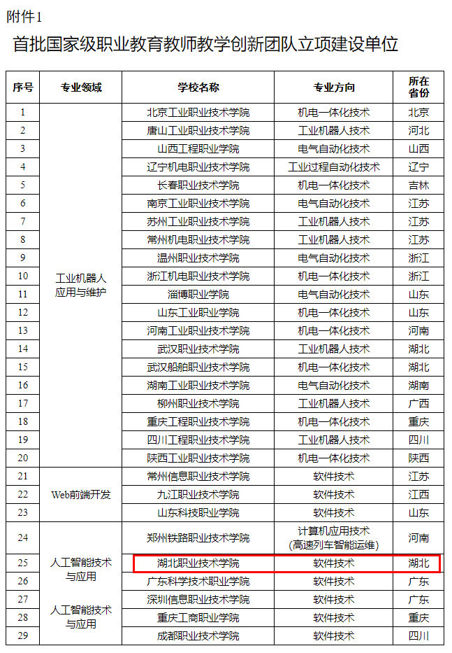 教育部教师工作司关于首批国家级职业教育教师教学创新团队遴选结果的公示