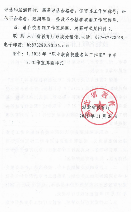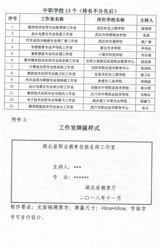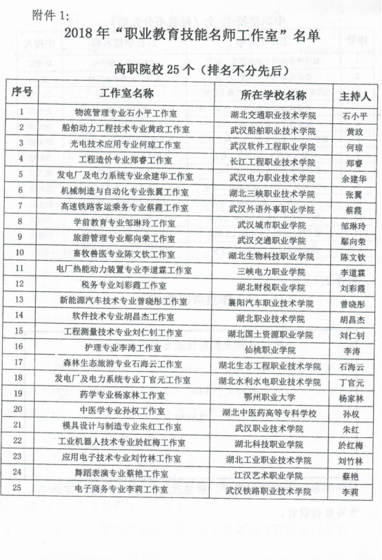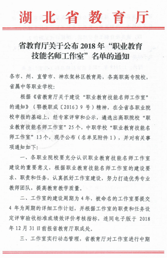 省教育厅关于公布2018年职业教育技能名师工作室名单的通知