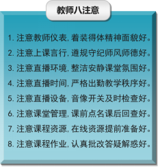 保持良好的教师形象和饱满的精神状态,透过屏幕将最好的自己展现给学生,用优秀来传递优秀;规范自身言行,为人师表,让自己的一言一行成为学生的榜样。