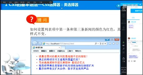 1、熟悉在线教学的操作流程,熟悉课件、题库等教学资源的推送,点赞、视频录制与播放等多种功能。