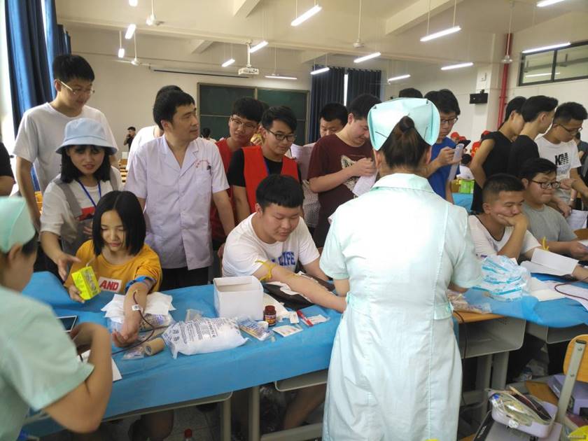 为弘扬“奉献、友爱、互助、进步”的志愿精神,5月16日,信息技术学院熊世明副院长、孙保清主任带领60余名师生代表,顶着烈日来到学校南校区知行楼8310教室,积极参加春季无偿献血活动。