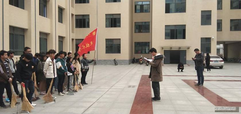 3月13日,信息技术学院学雷锋志愿小分队以“弘扬雷锋精神,做文明大学生,构建和谐校园”为宗旨,在老师带领下在南校校区知行楼开展打扫卫生活动。